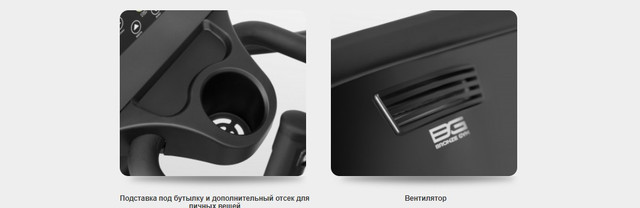 | Дополнительно | быстрые клавиши регулировки нагрузки на фиксированных поручнях, большой отсек для бутылки и аксессуаров на передней стойке |