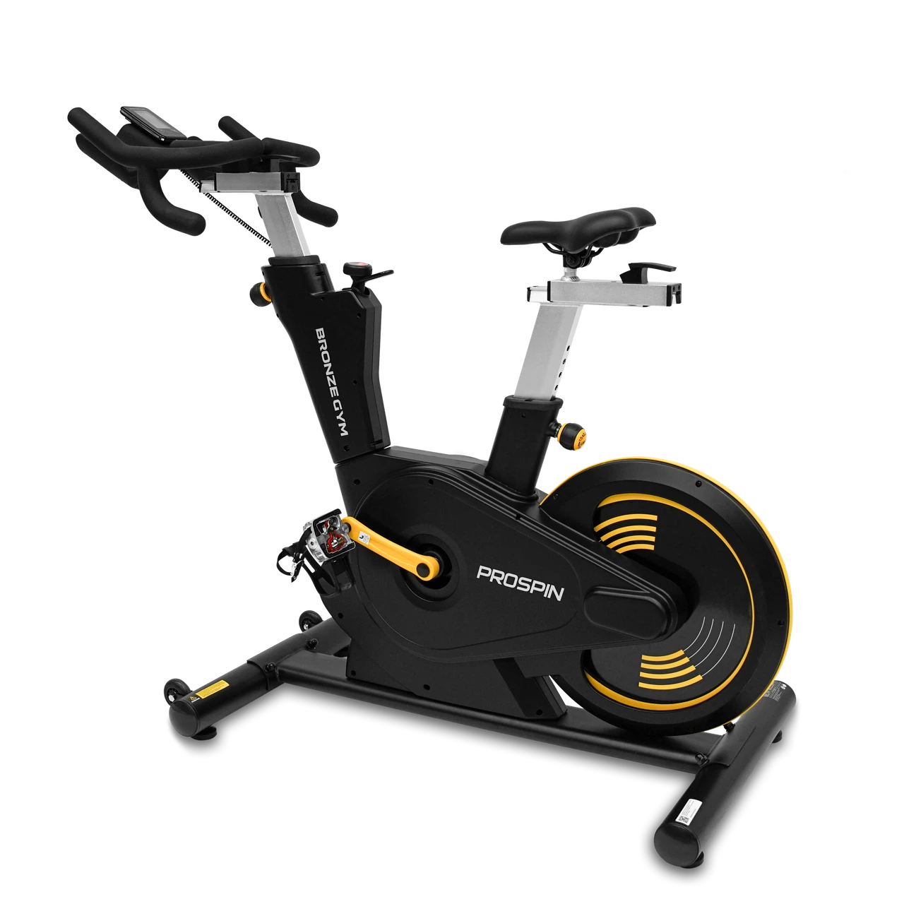 BRONZE GYM PROSPIN - профессиональный спин-байк для клубных тренировок в режиме максимальных нагрузок. Привод PROSPIN с преднатяжителем и магнитной системой нагружения является самой прогрессивной разработкой в биомеханике спин-байков и обеспечивает самую высокую степень эффективности и комфорта. Усиливает великолепный биомеханический эффект маховик с инерционным весом 20 кг. Абсолютно ровный диаметр и равномерное распределение веса по своей форме. Это еще один плюс в копилку ровного плавного хода и самого высокого коэффициента инерции. Встроенный приемник для беспроводной передачи частоты сердечного ритма, частота которого составляет 5 кГц, необходим нагрудный датчик (приобретается отдельно) BRONZE GYM PROSPIN отлично проходит так называемый "Тест на 6 часов" (проверка равномерности распределения нагрузки при педалировании, проводится в положении стоя; как правило, большинство спин-байков "проваливаются" (скорость увеличивается, нагрузка падает) при движении шатуна из верхнего положения в нижнее).